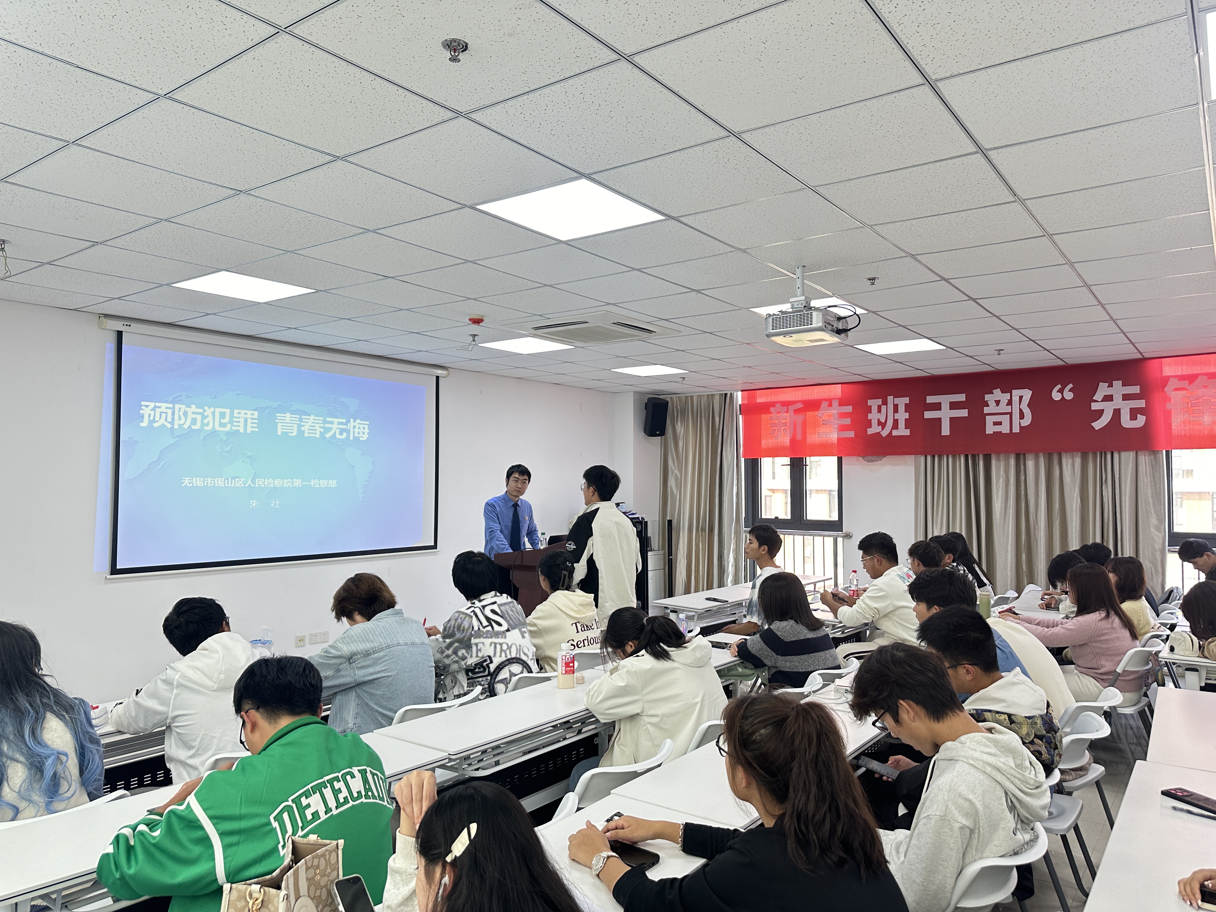 为提升新生班干部的法治素养和综合能力,10月23日下午,我校学工处邀请了无锡市锡山区人民检察院第一检察部五级检察官助理朱壮和心理健康教育中心副主任李保辉进行有关法律和心理的专题讲座。
