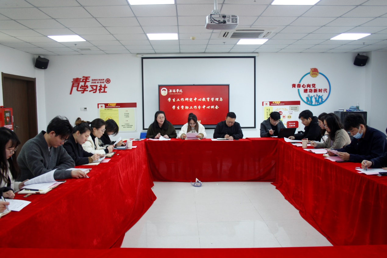 李佳熙分享了相关高校“一站式”学生社区建设情况及先进经验,结合我校“一站式”学生社区建设实际情况介绍在学生社区开展党建引领相关具体举措。徐月欣就关于《加强家庭经济困难学生发展型资助育人指导意见》作进行解读,并介绍了发展型资助育人方案,与会成员围绕辅导员资助工作职责要求与当前学生工作重难点进行了交流研讨。