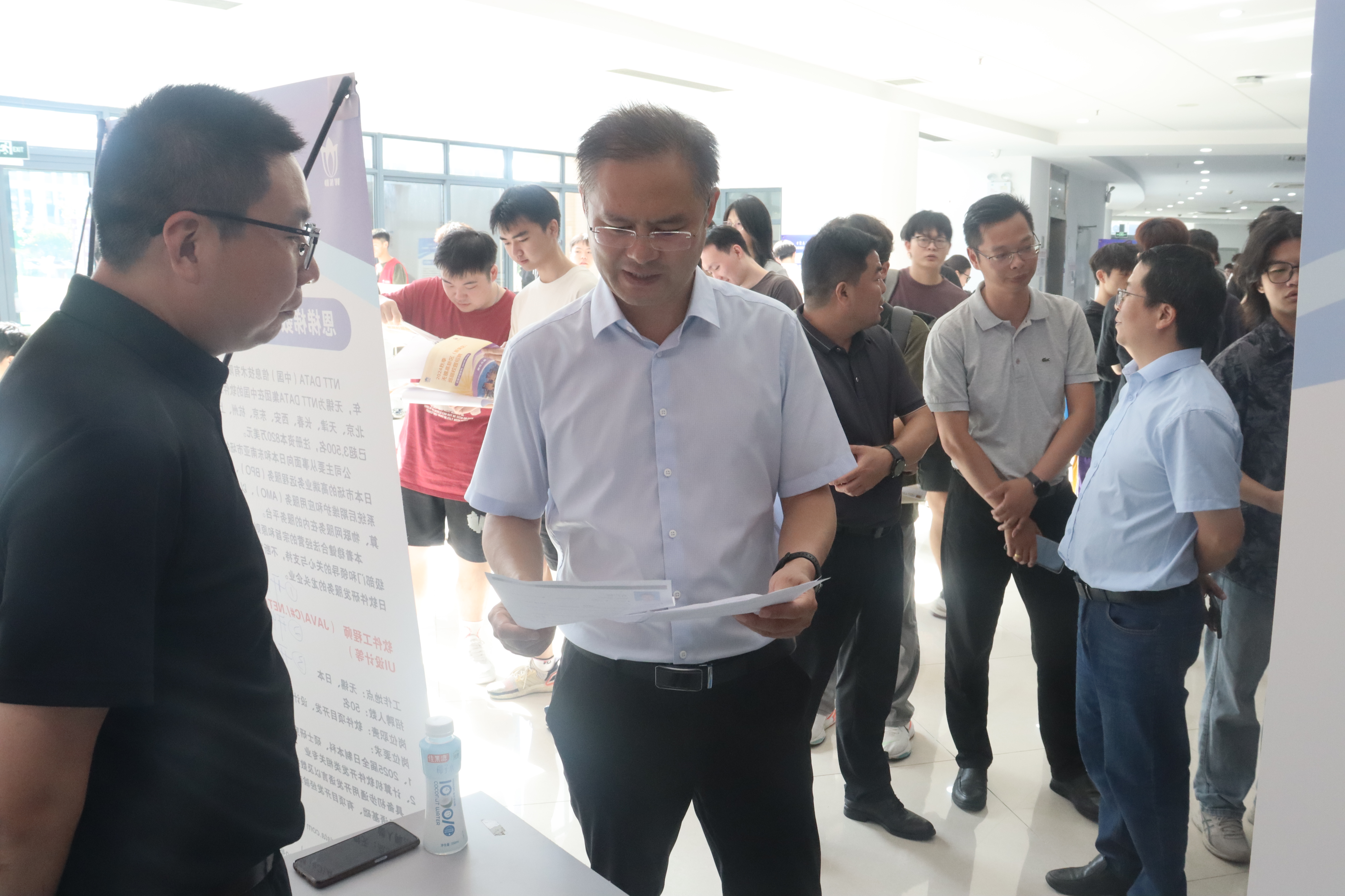 招聘会现场人潮涌动、气氛热烈。毕业生们穿梭于各用人单位招聘展位前,积极与企业代表交流互动,针对企业情况、岗位职责、福利待遇、职业发展路径等问题进行深入咨询。各参会企业通过招聘展牌和宣传单页,向学生们介绍岗位详情、具体要求、招聘人数等信息,并对学生们的职业规划提供了一些指导性的建议,部分企业当场对应聘同学进行面试,简化招聘流程。