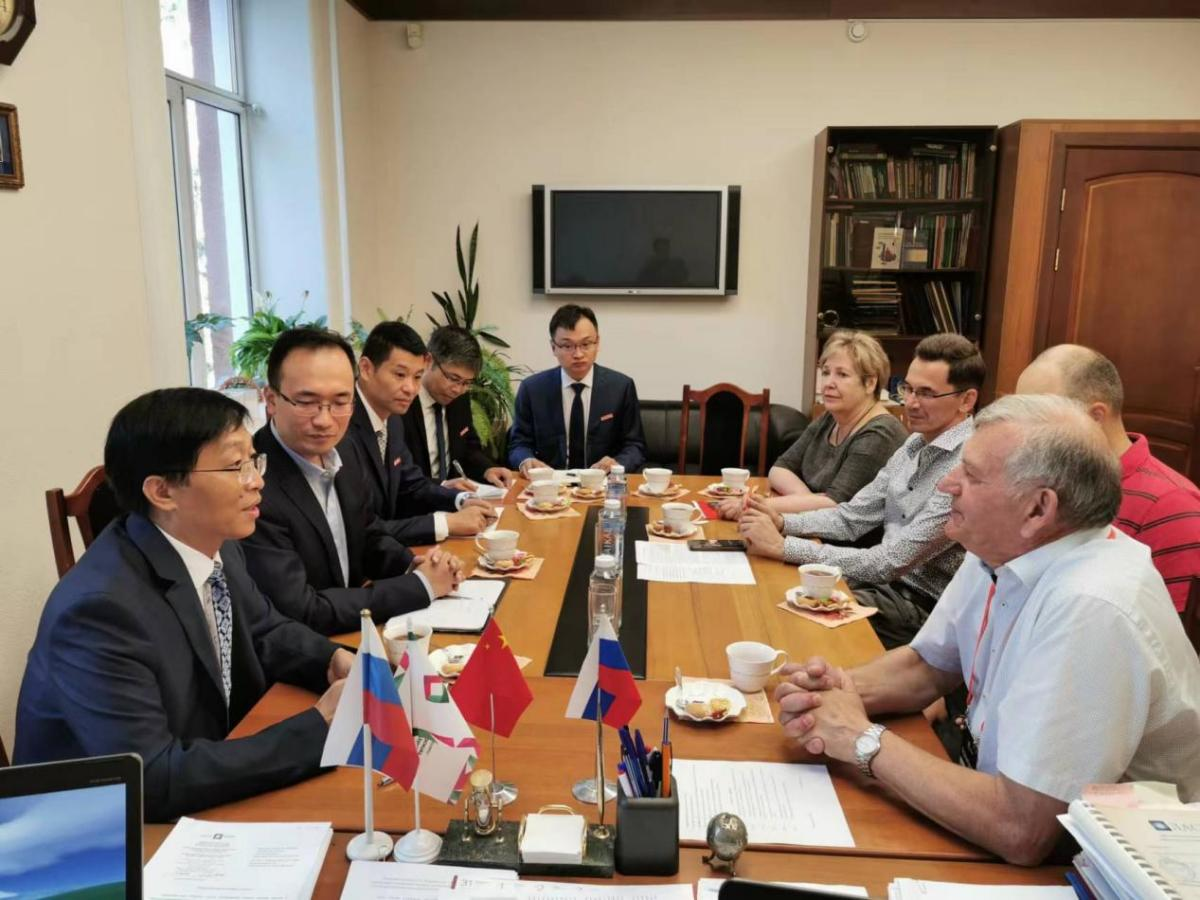 8月1日上午,我校代表团一行与新西伯利亚国立技术大学校长Anatoliy Bataev、教务副校长、专业学院院长、国际部主任等相关单位负责人会面,并就“无锡学院—新西伯利亚学院”筹建工作进行深入交流。